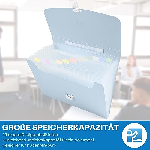 LEWITORS Cartellina portadocumenti A4, 13 scomparti, formato A4, adatta per documenti di ufficio, casa e scuola, blu