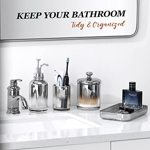 【4 Pezzi Accessori】- Il set completo di elementi essenziali per il bagno, tra cui un dispenser a pompa di sapone, un vassoio per la decorazione del bagno, un bicchiere e un porta tamponi di cotone, tutto ciò di cui hai bisogno sul lavandino.