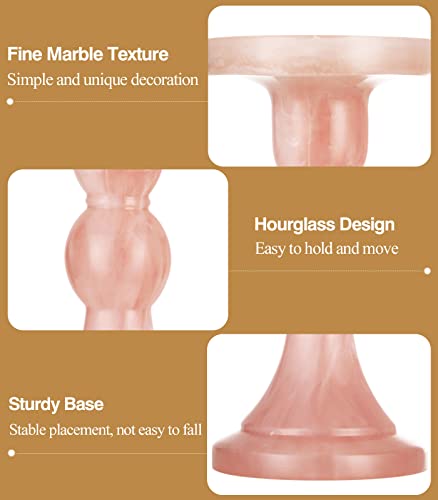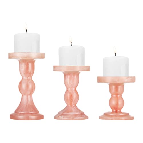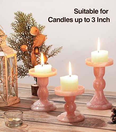 Lewondr Candelieri 3 Pezzi in Resina 100% con Base Larga, 3 Dim 3.5 / 4.3 / 5.5 Inch, Accessori Candele Tavolo, Porta Candela per Tavolo, Restaurante, Hotel, Casa - Inchiostro Rosa