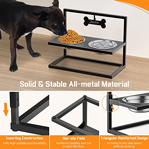 Lewondr Ciotola Doppia Rialzata per Cani, Ciotola in Acciaio Inossidabile con Suppporto Regolabile, Super Igienica e Facile da Pulire, Ciotola Rimovibile, Adatta ai Cani di Diversa Taglia, Nero