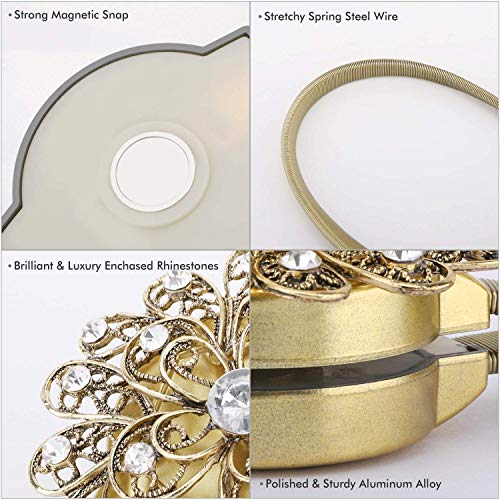 Lewondr Fermatende, 2 Pezzi Raccogli Tenda a Magnete con Filo in Acciaio Inossidabile 40 cm, Fiore Cristalli, Decorazioni Accessori Tende, Fermatende per Casa Camera da Letto - Bronzo + Argento