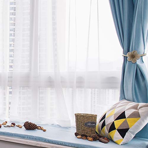 Lewondr Fermatende Raccoglitenda in Tessuto Lino Forma a Fiore 2 Set con Calamita, Dimensione Filo 40 cm, Accessori Tende, Decorazioni Finestre, Fermatende per Camera da Letto, Casa- Bianco - Beige