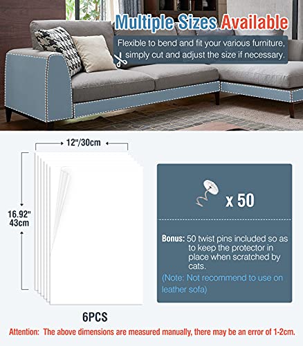 Lewondr Protezione Divano Graffi Gatto, 6 Pezzi Pellicola AntiGraffio Gatto Trasparenti in PVC Resistenti, Protezione per i Divani e i Vari Mobili, Tiragraffi per Gatti Divano, (6) 43x30cm + 50 Perni