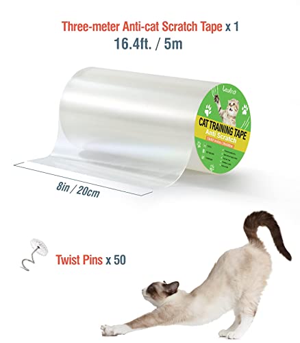 Lewondr Protezione Graffi Gatto 20 * 500cm, Nastro di Pellicola Adesiva con 50 Perni in Donazione, Tappetino in Pellicola di PVC AntiGraffio, Protezione dai Graffi di Gatti, Trasparente