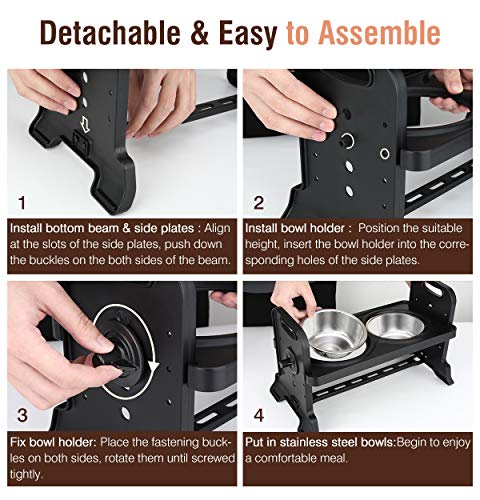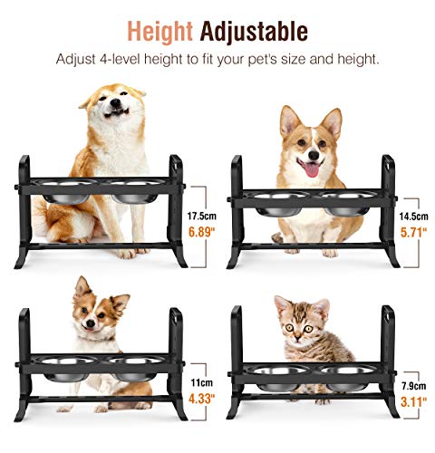 REGOLABILE - Il supporto con ciotole con il sistema regolabile a 4 altezze ideali per adattarsi alla altezza dei tuoi gatti e cani, consentendo di mangiare il tuo animale domestici, riducendo la pressione sul collo e sulle articolazioni degli animali e aiutando alla digestione facile per cani e gatti di piccola e media taglia. Non adatto per cani di grossa taglia.