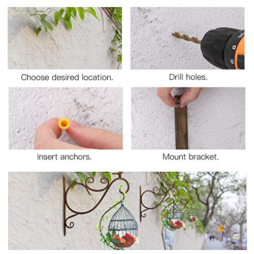 INSTALLAZIONE A VITI- Supporto per fiori con I fori alla base rende una facile e comoda installazione alla parete, basta soltanto eseguire dei fori e alla parete per più installarlo come le viti e i fischer inclusi nella confezione.