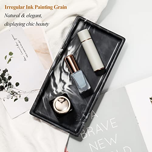 Lewondr Vassoio da Toeletta in Stile Semplice, Vassoio da Bagno Rettangolare in Ceramica con Angoli Curvi e Base Rialzata, Vassoio da Servizio, Portaoggetti per Trucchi, Gioielli, Marmo Nero Opaco