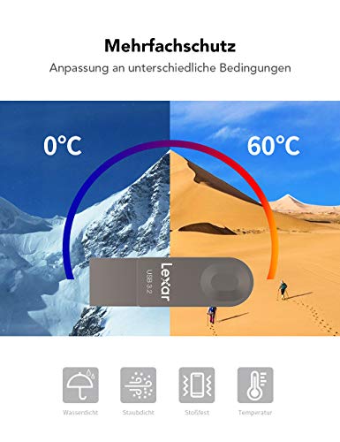 L'unità flash USB Lexar JumpDrive E32c è metallica e un'unità flash 2 in 1 con porte USB di tipo C e porte USB di tipo A. Utilizza l'alta velocità di trasferimento di USB 3.2 Gen 1 con velocità di lettura fino a 100 MB/s, rendendo il trasferimento di file da smartphone, PC e altri dispositivi un gioco da ragazzi.