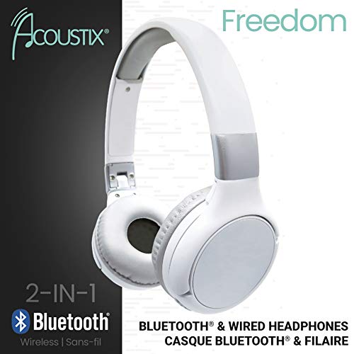 Lexibook Cuffie Bluetooth 2-in-1-Stereo Senza Fili cablato, cassaforte, Pieghevole, Regolabile, Bianco/Argento, Acoustix