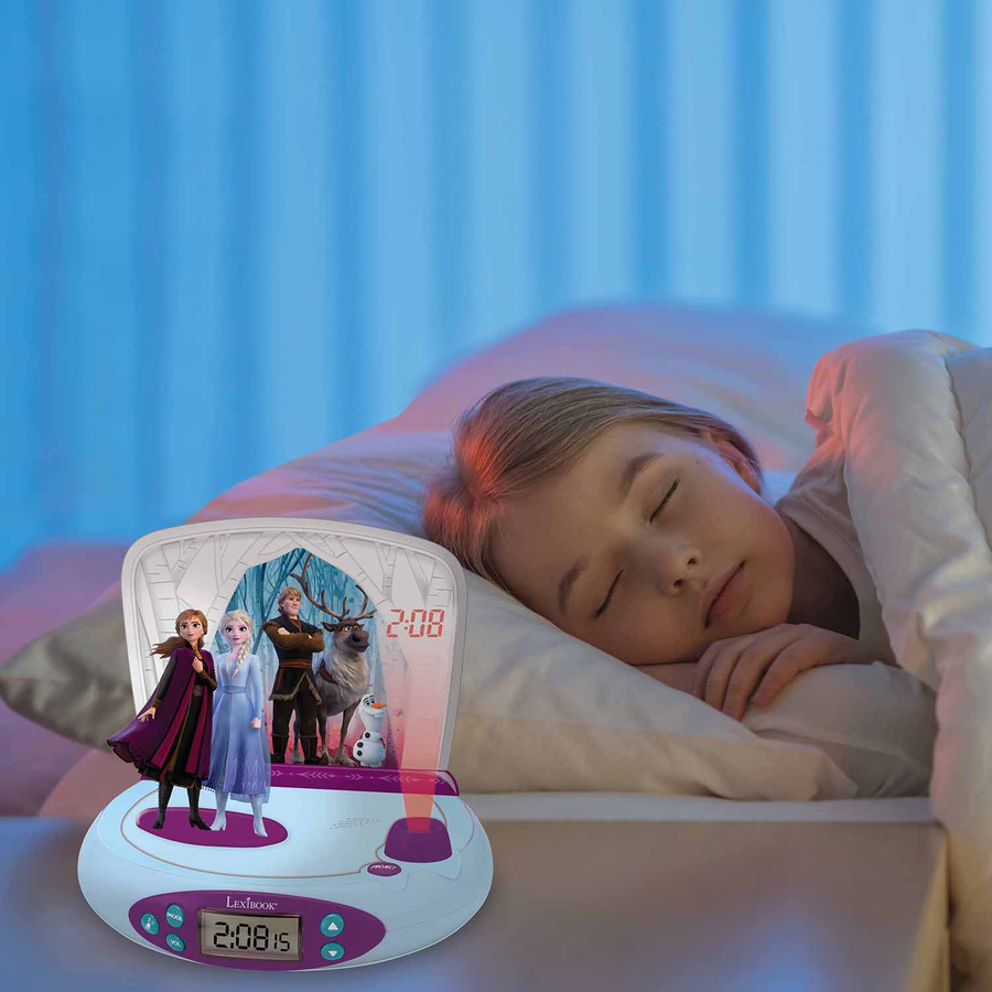 Proietta il tempo sul muro con la semplice pressione di un pulsante! Premendo la figura di Anna ed Elsa si possono ascoltare 4 grandi effetti sonori di The Ice Queen 2. Il pulsante sul fondo accende un'accogliente luce notturna che brilla fino a 15 minuti. Dettagli del prodotto: Dimensioni (lunghezza x larghezza x altezza): 18 x 16 x 17 cm. Materiale: plastica Con la radio FM Digital e visualizzazione dell'ora sul display LCD Sveglia con funzione snooze Richiede 4 batterie AA/LR6 (non incluse) Età: Da 4 anni Attenzione Non adatto a bambini sotto i 4 anni. Batterie non incluse!