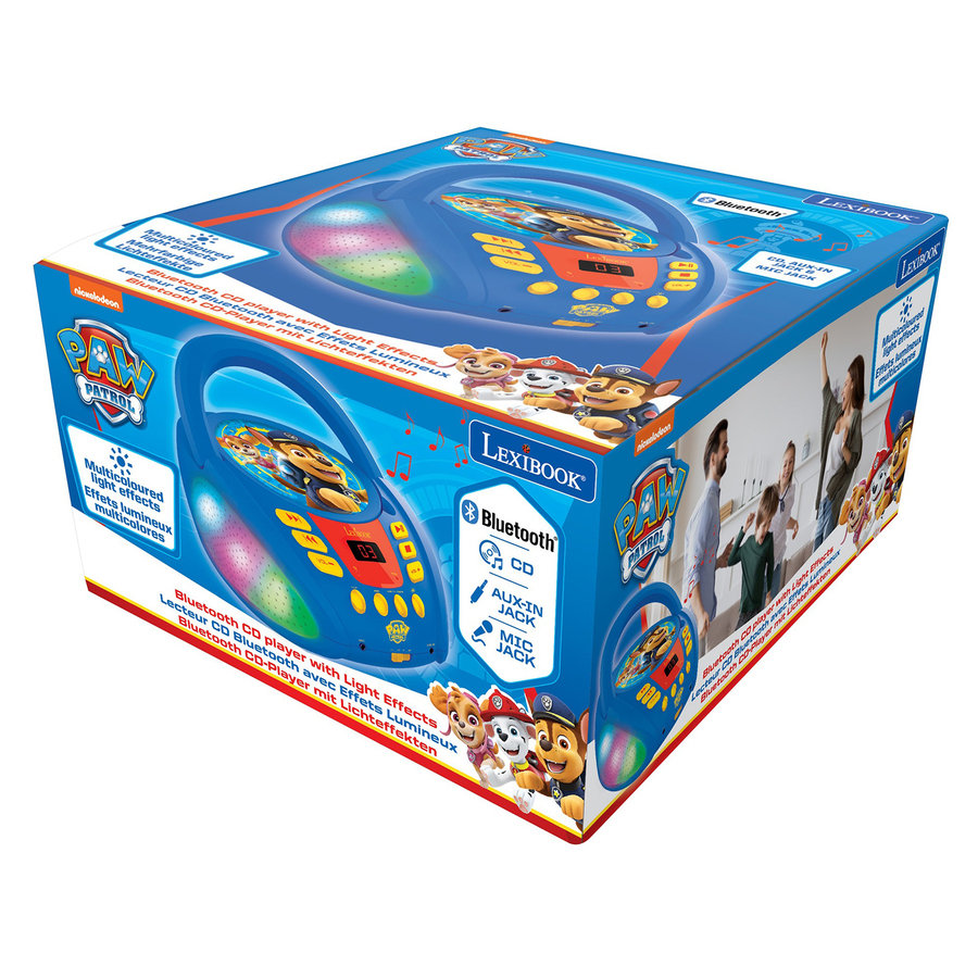 Dettagli del prodotto: Età: da 3 anni in su Fresco lettore CD portatile con Bluetooth, per la connessione senza fili a Smartphone s, tablet e altri dispositivi Bluetooth Il lettore CD con il tema dei Paw Patrol e i nuovi effetti luminosi multicolore è perfetto per i bambini Il Bluetooth consente di collegare senza fili al lettore molti dispositivi come Smartphone s o tablet La presa per il microfono trasforma il lettore in un divertimento karaoke con un microfono esterno (non incluso) Adatto per CD, CD-R e CD-RW Ingresso audio aggiuntivo per Smartphone s e tablet Funzione di programmazione/ripetizione integrata Altoparlante: 3 W x 2 Alimentazione: Richiede una presa di corrente (cavo incluso) o batterie 6c / LR14 (non incluse). Dimensioni e materiali: Dimensioni da assemblato (lunghezza x larghezza x altezza): 20,5 x 23,8 x 11,6 cm. Materiale: plastica Incluso nella consegna: Spina di rete Attenzione: le batterie non sono incluse