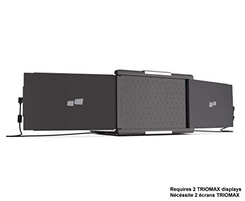 Design compatto e leggero: 3,.8 x 24,1 x 1,27 cm - 898 g. Include 1 schermo TRIOMAX + 1 cavo USB-C+A + 12 piastre metalliche adesive per 3 laptop + 1 TRIO clip.