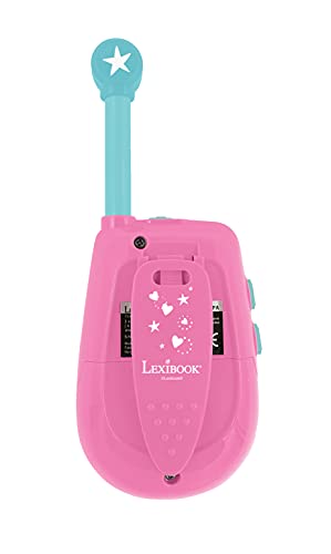 Lexibook Unicorn Walkie Talkie per bambini 2 km di trasmissione Funzione luce codice Morse Clip da cintura per il trasporto, batteria, rosa, TW25UNI