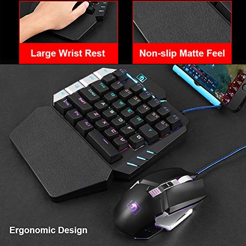 LexonElec Tastiera meccanica da gioco a una mano Tastiera K109 cablata a 38 tasti con retroilluminazione a LED multicolore da gioco a un solo palmo con supporto da polso (interruttore K109 / Blue)