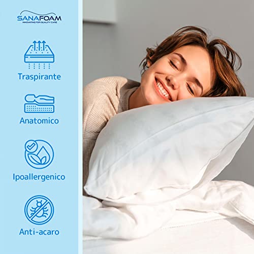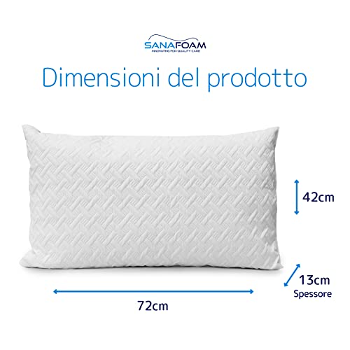 Lexuslance - 1 Guanciale Sanafoam in fiocchi di Memory, misura 72x42 altezza 13/16~ cm. Cuscino Letto Anallergico Antiacaro Soffice e Morbido.100% Made in Italy.