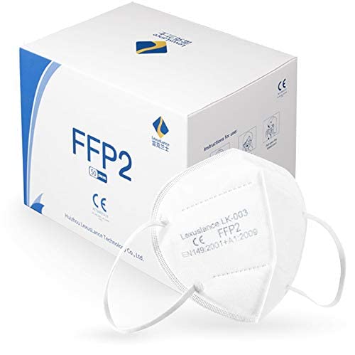 Lexuslance LK003 FFP2 50 Mascherine FFP2 Certificate CE Europa Adulti BFE ≥95% sigillate in comode bustine tascabili apri e chiudi da 5 pezzi EN 2016/425 Dispositivo di protezione individuale
