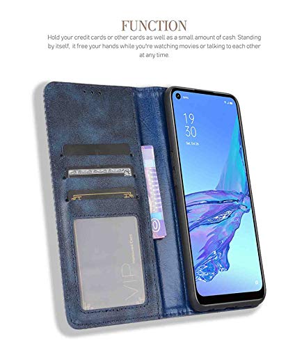 LEYAN Cover per Oppo A53s, Custodia Folio in Pelle Flip Wallet Libro Case con Portafoglio, Premium PU/TPU Magnetica Cover con Supporto di Stand/Carte Slot (Blu)