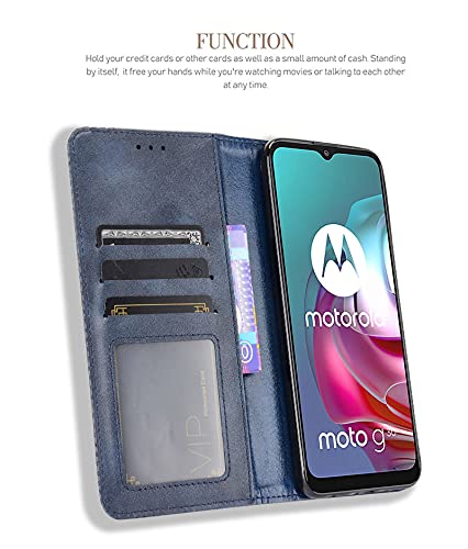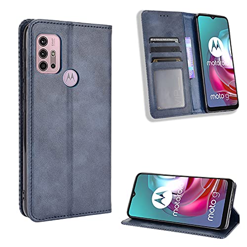 LEYAN Cover per Motorola Moto G30, Custodia Folio in Pelle Flip Wallet Libro Case con Portafoglio, Premium PU/TPU Magnetica Cover con Supporto di Stand/Carte Slot (Blu)