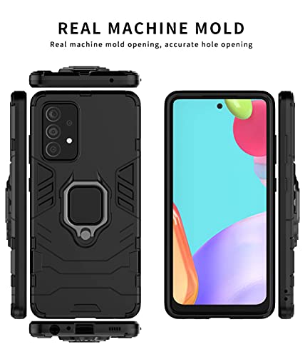 LEYAN Cover per Samsung Galaxy A72 | A72 5G, TPU/PC Dual Layer Hybrid Armor Custodia con Supporto Magnetico Auto, Silicone Cover con 360° Girevole Anello,Antiurto Protezione Shell, Nero
