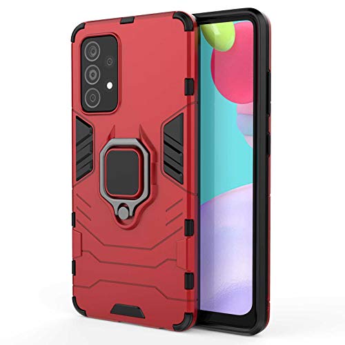 LEYAN Cover per Samsung Galaxy A52 | A52 5G, TPU/PC Dual Layer Hybrid Armor Custodia con Supporto Magnetico Auto, Silicone Cover con 360° Girevole Anello,Antiurto Protezione Shell, Rosso