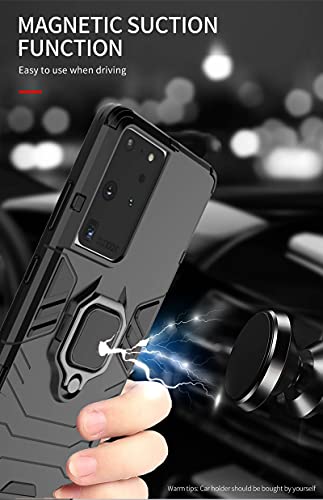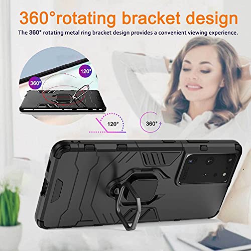 LEYAN Cover per Samsung Galaxy S21 Ultra 5G, TPU/PC Dual Layer Hybrid Armor Custodia con Supporto Magnetico Auto, Silicone Cover con 360° Girevole Anello,Antiurto Protezione Shell, Black