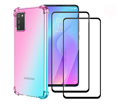 LEYAN Cover per Samsung Galaxy A02s + 2 Vetro Temperato, Silicone TPU a Gradiente Colori Custodia, Soft Rubber Protettiva Case, Antiurto Antiscivolo Protezione Shell, Rosa/Verde