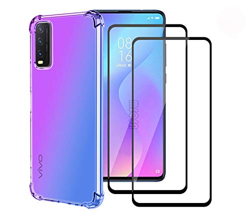 LEYAN Cover per Vivo Y20s / Vivo Y11s / Vivo Y20 + 2 Vetro Temperato, Silicone TPU a Gradiente Colori Custodia, Soft Rubber Protettiva Case, Antiurto Antiscivolo Protezione Shell, Viola/Blu