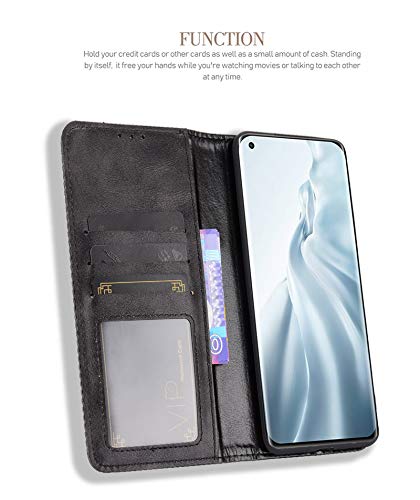 LEYAN Cover per Xiaomi Mi 11, Custodia Folio in Pelle Flip Wallet Libro Case con Portafoglio, Premium PU/TPU Magnetica Cover con Supporto di Stand/Carte Slot (Nero)