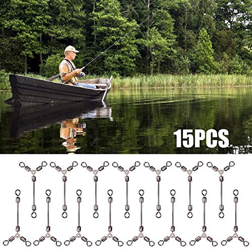 Leyee Girelle per pesca a 3 vie, 15 pezzi durevoli a forma di Y rotante girevole da pesca con gancio per esche da pesca