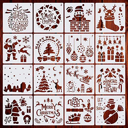 LEZED 16 Pezzi Stencil di Natale in plastica per Disegno Pittura Modello di Natale Stencil Riutilizzabili Pittura Modelli Mandala Stencil Riutilizzabile per Scrapbooking, Disegno, Decorazione