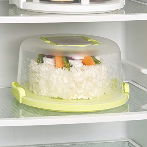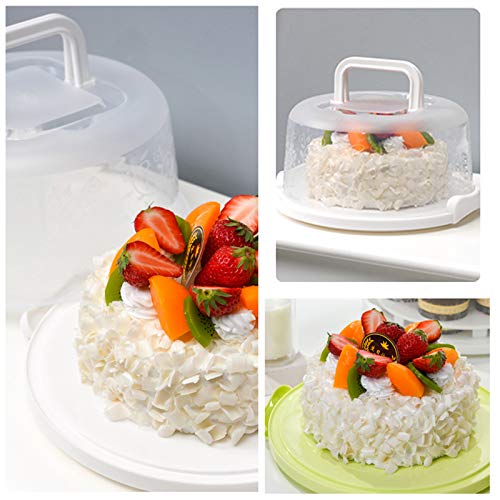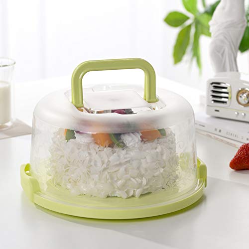 LEZED Porta Torta con Coperchio da Trasporto Portatile Contenitore per Torta in Plastica con Manico per Il Trasporto per Focaccina Scatola Rotonda 26 x 22,5 x 13,5 cm (Verde)