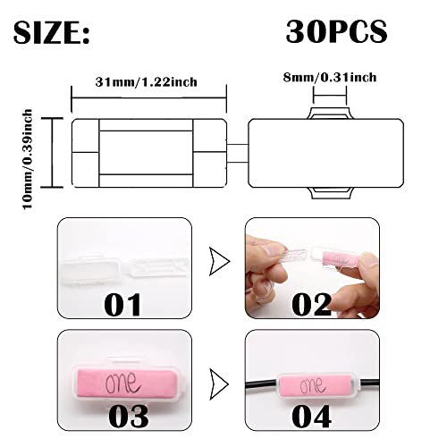 Lista di imballaggio: inclusi 30 pezzi di scatole trasparenti per etichette per cavi impermeabili in totale, la dimensione è 10 * 31 * 8 mm / 0,39 * 1,22 * 0,31 pollici, può contenere carta per appunti da 30 * 10 mm, adatta per fili e cavi larghi 10 mm.