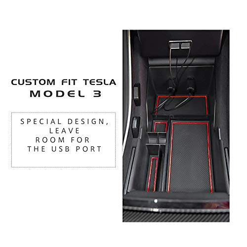 LFOTPP Bracciolo Vano Portaoggetti per Model 3, Secondario Organizzatore Braccioli, Scatola di Immagazzinaggio (Rosso)