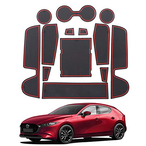 LFOTPP Mazda3 Tappetini Gomma, Tappetino Antiscivolo per Portabicchieri Braccioli Scanalatura Porta Interni Auto Accessori 13 pezzi (Rosso)
