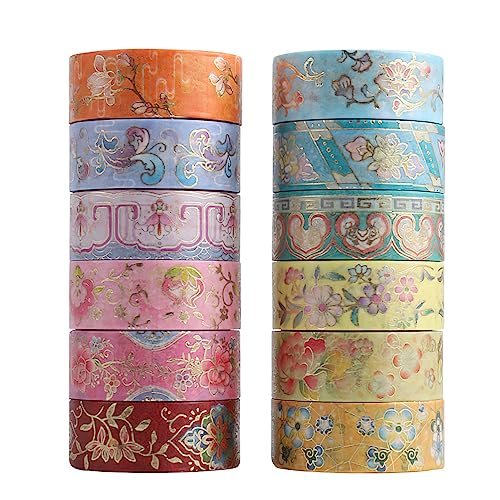 LGEGE 12 rotoli di nastro Washi Tape in stile cinese, 15 mm di larghezza, fiore, motivo classico, decorazione giapponese con nastro di mascheratura per Scrapbook, Bullet Journal (2m)