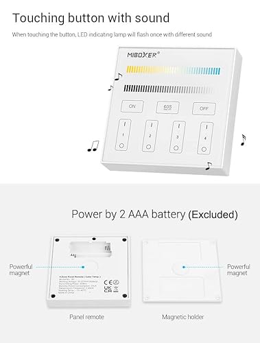 LGIDTECH B2 Miboxer Wireless 2.4G RF 4-Zone Wall Mounted Smart Panel Controller Tipo di batteria (esclusa), Funziona solo con WW/CW Serie LED Lampadina FUT017 FUT019, Strip Controller FUT035 FUT036