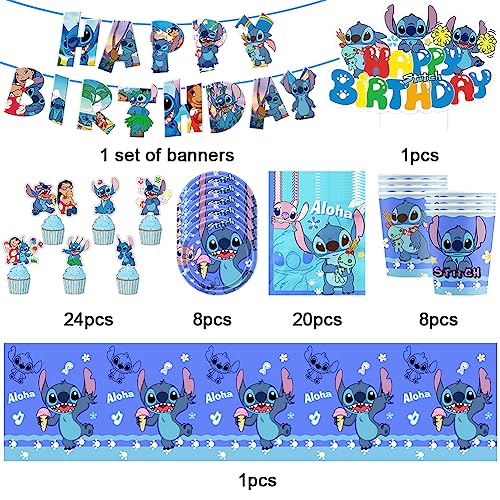 LGQHCE Stoviglie per Festa di Compleanno S-titch, Kit Festa Compleanno L-ilo und S-titch, S-titch Set di Stoviglie per Feste per Bambini e Bambine Adatte