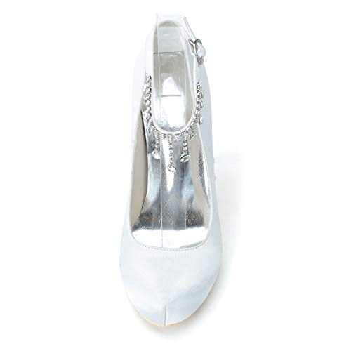 LGYKUMEG Tacchi a spillo da donna Scarpe da sposa con strass in raso, Scarpe da sposa Testa tonda, Cinturino alla caviglia Décolleté da sposa Festa, Scarpe eleganti,Rosso,US8/EU39/ UK6