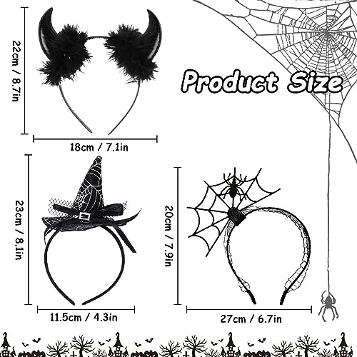LGZIN 3 Pezzi Cerchietti per Capelli Halloween, Cerchietto con Corno del Diavolo, Cerchietto con Cappello da Strega, Capelli a Forma di Ragnatela, Fasce per Halloween, Carnevale, Feste in Costume
