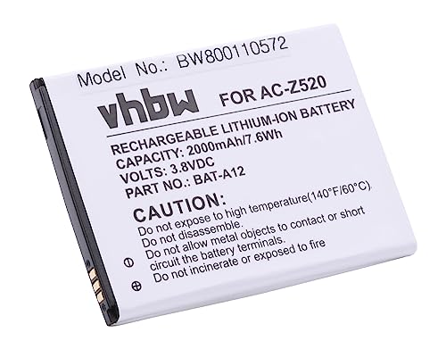 Vhbw Li-Ion Batteria 2000mAh (3.8V) per cellulari e smartphone Acer Liquid Z520, Z520 Dual Sim sostituisce BAT-A12, KT.00104.002.