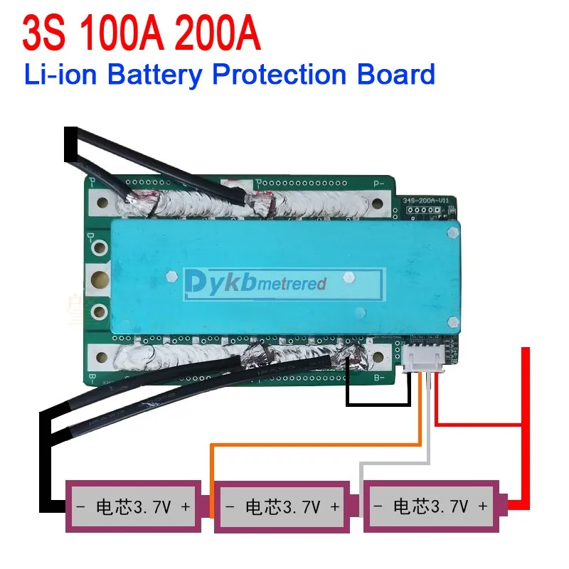 Dykb 3S 100A 200A 300A 12V Li-ion Lithium Battery Protection Board High Current 3 CELL RV Inverter BMS charging W Balance