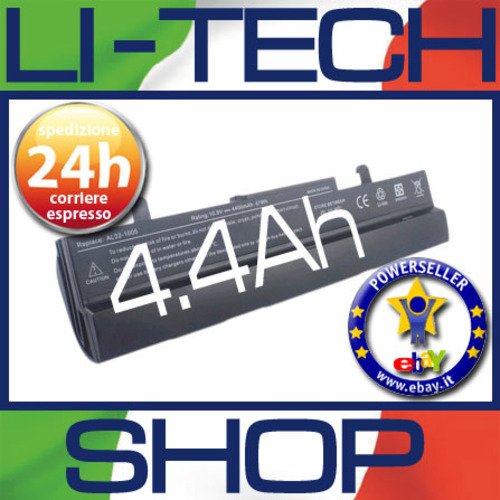 LI-TECH Batteria compatibile NERO per ASUS EEEPC EEE PC EEPC 1005HA-BLK036S 4400mAh PILA