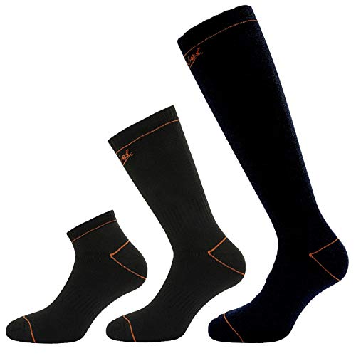 Liabel, 6 paia di calze da lavoro professionali con rinforzo su punta e tallone e soletta interna in spugna. 2 nero 2 blu 2 grigio.