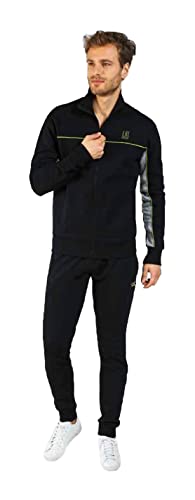 Liabel Tuta Uomo in Felpa di cotone INVERNALE, Vari Modelli, Tuta Uomo Sportiva, Tuta Uomo invernale garzata (FL4 NERO, XL), regular