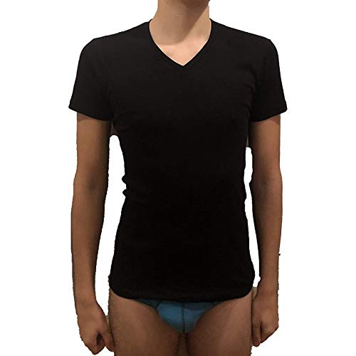 Liabel Maglia Manica Corta Scollo A V Puro Cotone Supima Art. ARIA53-4, Nero