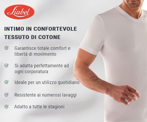 Liabel T-Shirt Uomo 100% Cotone, Art. 4428/t53 Scollo V, Pacco da 3, Bianco L