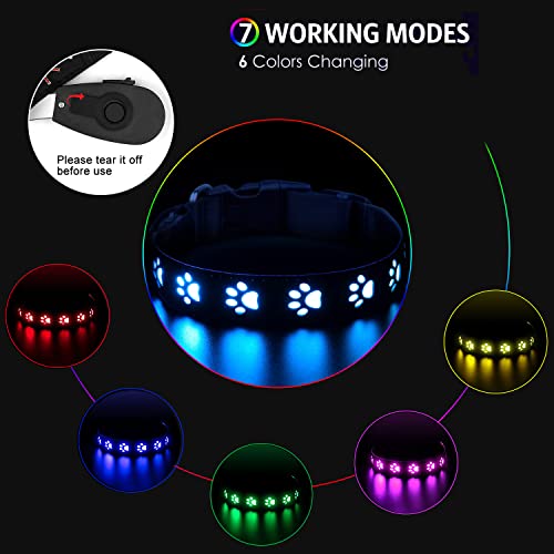 LIAMERHE Collare Luminoso per Cani Impermeabile Collare Luminoso per Cani Ricaricabile Misura di Sicurezza Regolabile Collare per Cani con 7 Colori Cangianti Sicurezza Luminosa