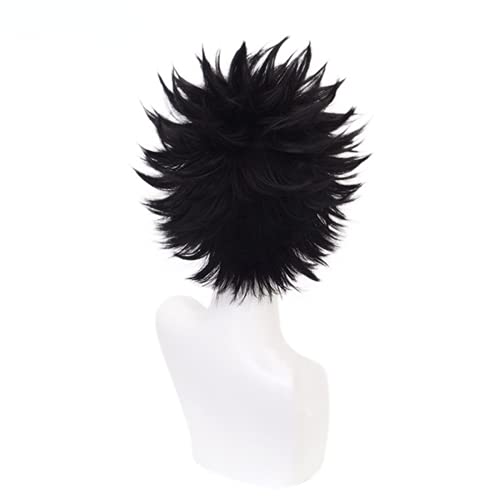 Liamiona Dabi Parrucca cosplay Parrucca corta nera naturale per Halloween Party + Cappuccio per parrucca gratuito