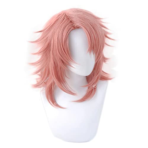 Liamiona Sabito Cosplay Anime Parrucca Capelli corti rosa resistenti al calore Parrucca per costumi da festa di Halloween con berretto per parrucca