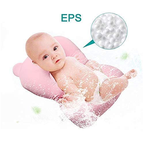 Tappetino da bagno per bambini, design molto pratico: le tre cinghie del cuscino per baby shower possono fissare bene il cuscino, in modo che il bambino possa essere fissato all'interno senza tenerlo in posizione. Con la fibbia a tre vie è possibile fissare saldamente il tappetino da bagno. La lunghezza della fibbia può essere regolata a piacimento, il che è flessibile e confortevole. È più facile adattarsi a diverse vasche da bagno per bambini.